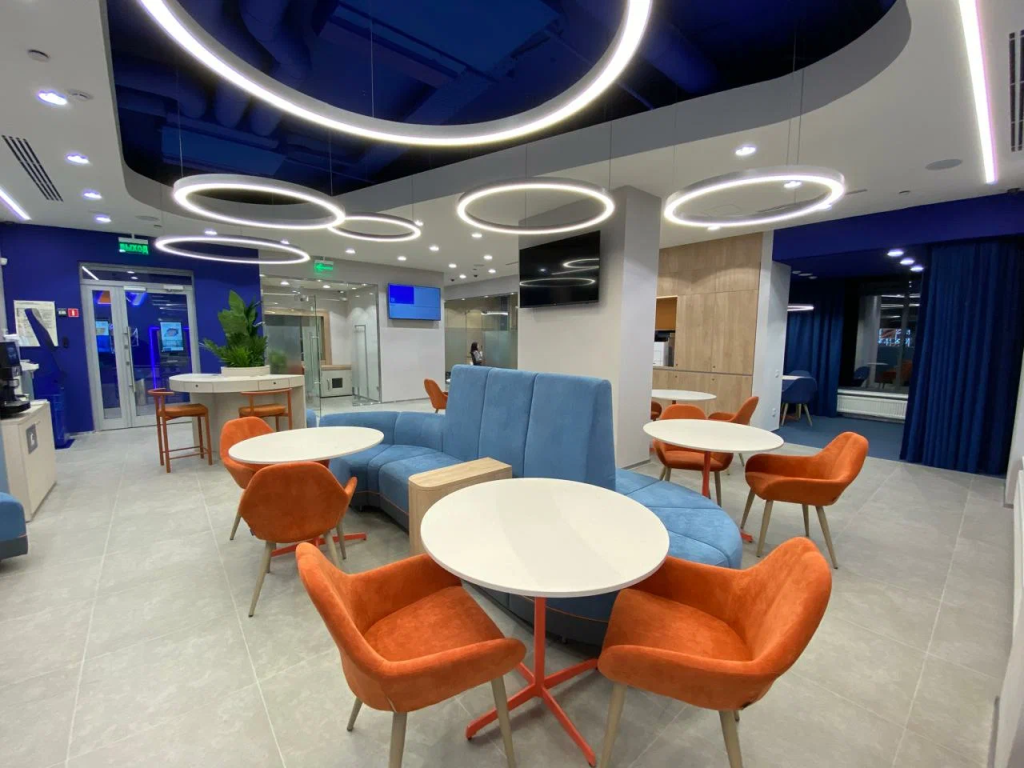 Дизайн офиса компании «ГазпромБанк» выполнен в современном и функциональном стиле. Он сочетает в себе чистые линии, нейтральную цветовую палитру и элементы минимализма, создавая рабочую атмосферу офиса, способствующую концентрации.